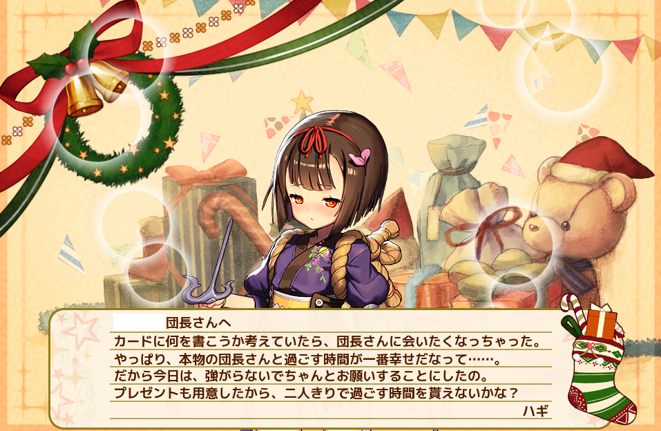 だからすっごく…とても安心できるんだ…気付いたよ、わたし団長さんが居てくれればね…本当に…えへへ、団長さん!みんな元気!わたし元気!