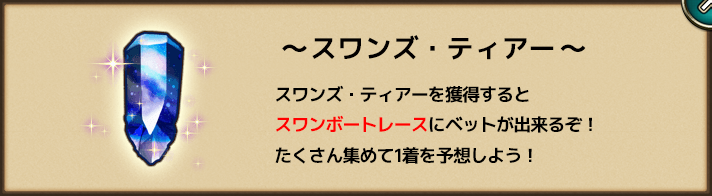 決勝レースまでに「スワンズ・ティアー」を集めてベットをしましょう!