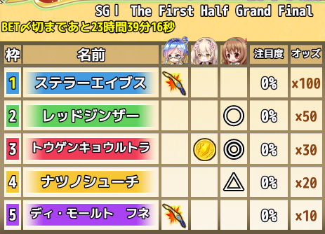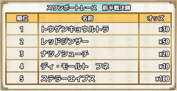 | 前半イベントレース予想と結果 |