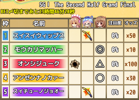 | 後半イベントレース予想と結果 |