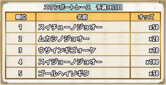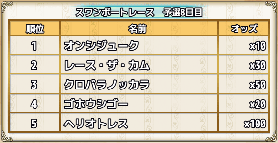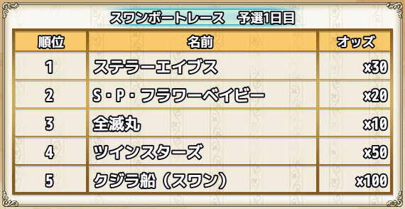 スワンボートレース結果 †