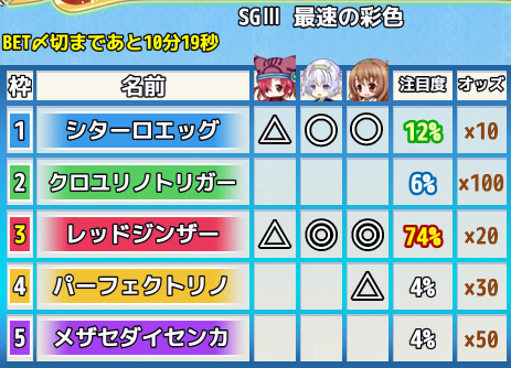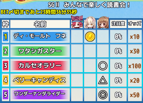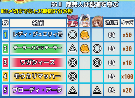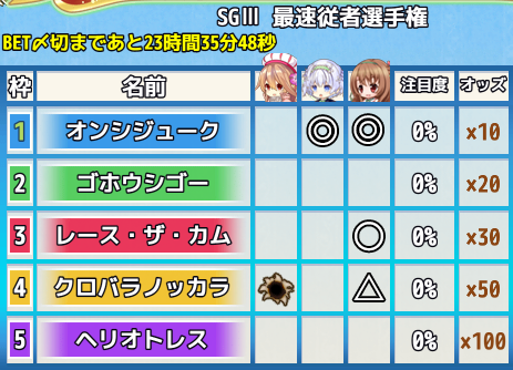 レースへのベット参加賞 †