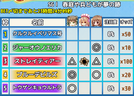 レース開始時間、締め切り時間は毎日12:00になります。