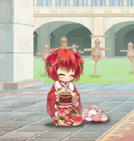 | 【期間限定】お月見② | 向こうで大餅つき大会が開かれてましたよぉ! あたしも参加してみようと思います! アカシア隊のメンバーとして、絶対に負けられませんよー! ど根性ーっ! |