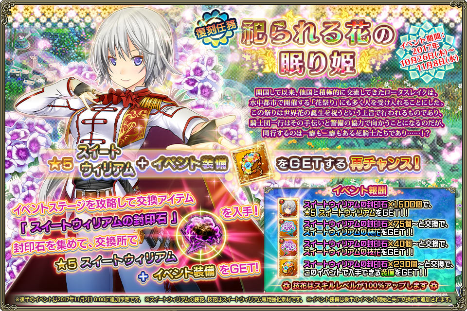斬★6「ランタナ(花祭り)」、魔★5「エノコログサ(花祭り)」、魔★5「カカリア」、斬★5「スイートウィリアム」