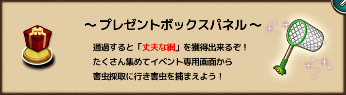 勲章報酬 スタミナ ゴールド ガチャ種 害虫討伐証 経験値 宝箱 備考 スキップチケット×15 0 0 0 0 0 1(丈夫な網×1) -