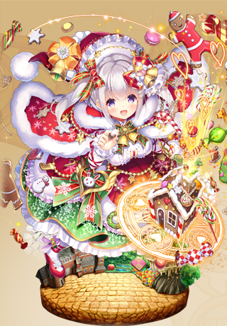 | 【期間限定】クリスマス⑤ | サンタのイベリスが、ご近所に恩返しのプレゼントをお届け! ……って、お母さんとお父さんに言われて、配ってきました~。はいぃ、疲れた~。団長さんとイチャラブするつもりだったのにな~……アイドルは大変です~。 |