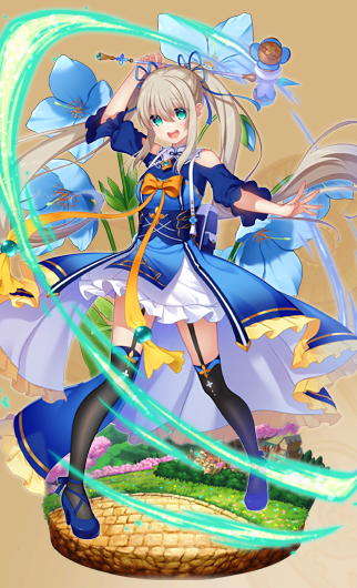 | 初登場 | こんにちは、私はメコノプシスよ! やっと団長様のもとへ来ることができた……! まだまだ半人前だけど、皆を助けて、 団長様を支えられるような花騎士になるために頑張るわ! | 常設01 | 101 | 001 |