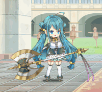 イベント中の他のキャラとの立ち絵比較からも明確なようにかなり小柄な花騎士だが、自分の身長よりも柄の長い両刃の大斧を軽々と使いこなす。