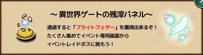 勲章報酬 スタミナ ゴールド ガチャ種 害虫討伐証 経験値 宝箱 備考 スキップチケット×15 0 0 0 0 0 1(ブライトフェザー×35) -