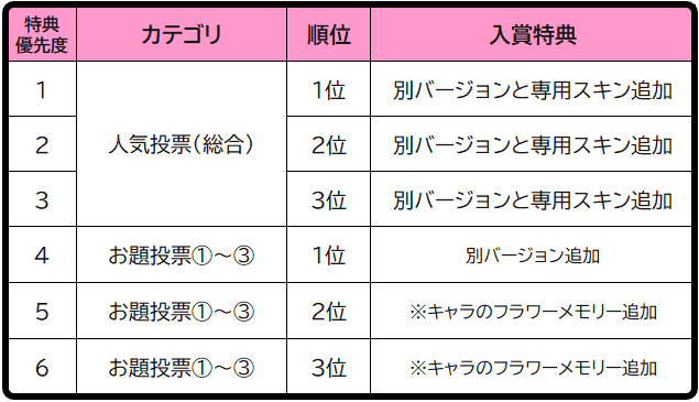 ※イベント専用ボーナスステージの各種投票券はそれぞれのステージを1倍で召喚した時の獲得枚数である。