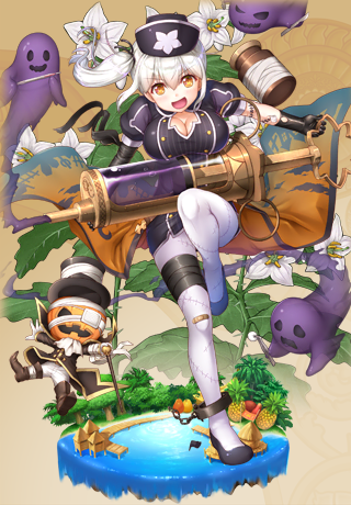 | 【期間限定】ハロウィン① | 我が祖父直伝の変装術! ハロウィンで存分に披露してやろう! まずは墨で顔を黒く塗りたくり、その上で仮面をかぶって……え? 可愛い顔が隠れるのは忍びない? だ、団長が言うならしようがないなあ~♪ 顔は出してあげるよ。 |