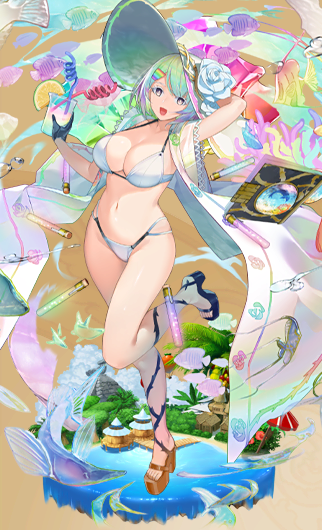 | 【期間限定】夏③ | 夏の思い出と言えば、みんなが外で遊ぶ中、涼しい実験室で実験を繰り返してたことかな。 でも、せっかく水着に着替えたんだし、実験室にこもらずバナナオーシャンのビーチで泳ぐのもありかもしれないわね。 | 2022/08/08 | 028 | 106 |