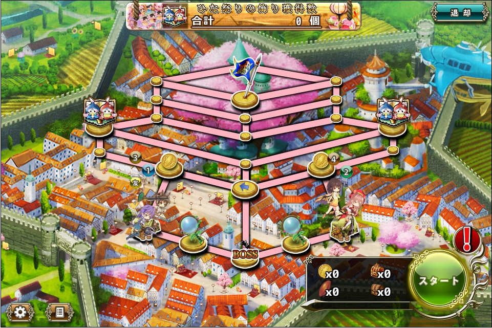イベントマップを周って獲得できる『ひな祭りの飾り』を集めてイベントガチャを回す。