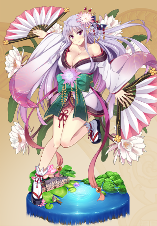| 開花 | ワタクシはこの頂で舞い続けましょう。 人々の為、桃源郷の為、世界花の為、そして愛しい主様(ぬしさま)の為に。 どうぞ目を離さず、ワタクシを見届けてくださいませ。 |
