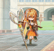 ハサミが武器の花騎士は、過去にもギンバイソウがいたが、オレンジのハサミは彼女のものよりも大振りで身の丈以上のサイズ。