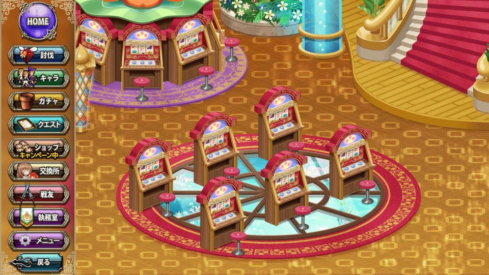 イベント画面の「SLOT台選択」を押下し、画面中央の6台のスロット台から
