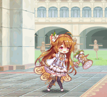 | 【期間限定】ハロウィン① | 団長さん! 仮装の準備はバッチリですね! これでハロウィンをバッチリ楽しみましょう! えっ? お菓子の準備……? ああぁぁぁっ! あげる方の準備を忘れてましたぁっ! はっ! そうです、先に急いでお菓子を貰いに行きましょう! |