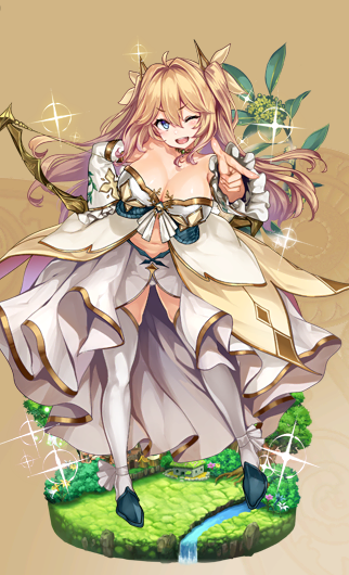 | 会話① | ボクはね、騎士学校では「勝利の女神」って言われてたんだ。 女神だよ女神!すごくない!?超カッコイイ! 団長ちゃんも、困ったことがあったらボクに任せてよ!勝利の女神が、ばば~んっと助けてあげるからさ! | 常設30 | 130 | 030 |