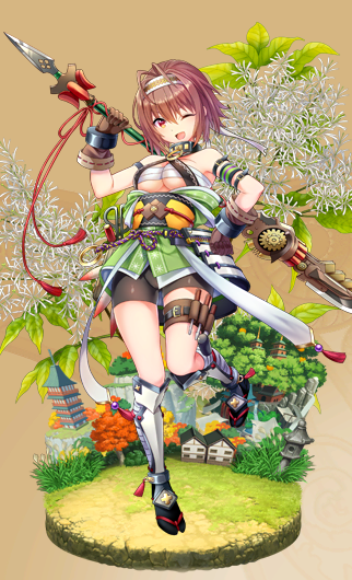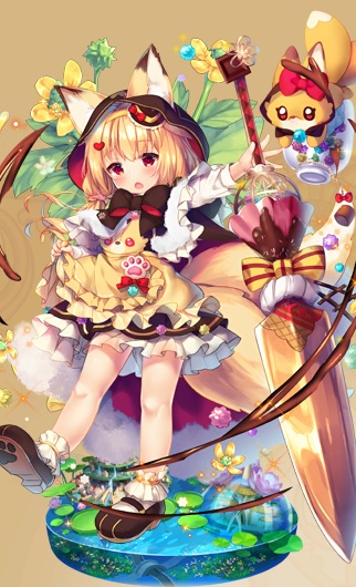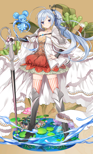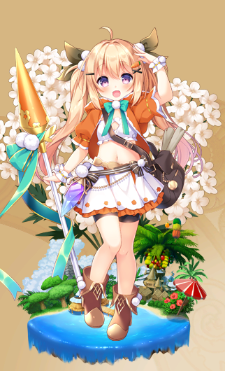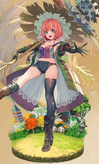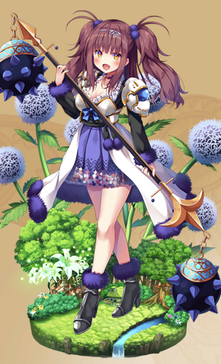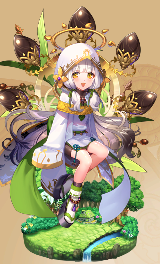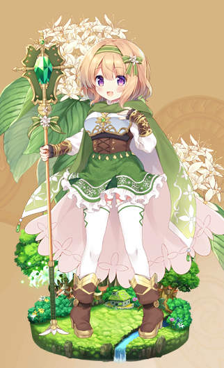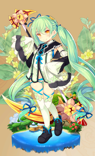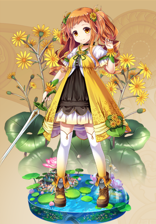 「幸福になります」がバイカモの花言葉だけど、 わたしはわたしより、他の人たちの幸せが欲しいカモ! 壺をオススメしているのは、だからカモ! 集めて配って、配られた人がまた集めて配るカモ! そしたら幸せな人がすごい増えるカモ!楽しみカモ~♪ | 私はギンバイソウだよ♪ 花言葉は「平和」とか「愛のささやき」なの。 身体が丈夫なのが取り柄かなぁ。 よく、転んだり馬車にはねられたり 崖から落ちたりしちゃうんだけど、それでも大丈夫♪ 不運だね、ってみんなから言われるけど、全然気にしてないよ♪ | トリトニア調査隊一番槍、フェンネルよ! 花言葉は、「賞賛」、「力量」、「強い意志」。 トリトニア隊長のために、この力を使ってみせるわ! この槍……オンブレッキオは、パパとママが作ってくれたの。 欲しいって言われたってあげないんだからねっ! |