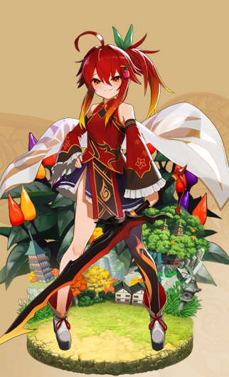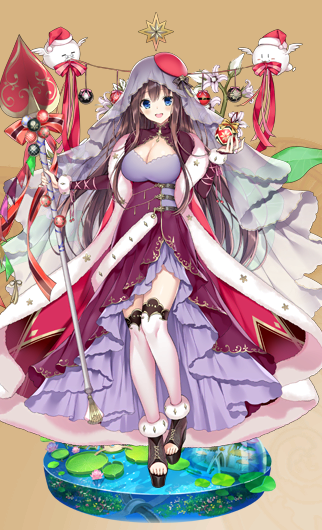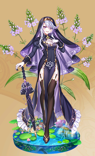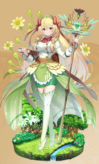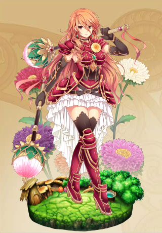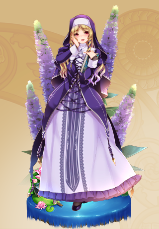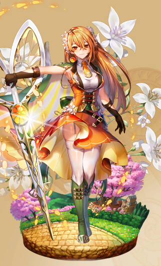 サフランよ。普段と違う衣装に着替えてみたわ。 花言葉は「節度ある態度」、「喜び」。 「控えめな美」っていうのもあるけど、 団長さんの前だと控えめでいられなくなっちゃうときがあるの。 私ってば仕方ないわね。 | サンゴバナの花言葉「きらめき」は、刃の輝きだけじゃないんです。 心のきらめき、華やかで眩しいもの。 切なくなるような、胸のトキメキ。 そういうものに、私は魅了されていて……ふふっ♪ 繊細なことを言う私も、たまには悪くないですよね? | ベルガモットバレーで大神官を勤めています、ヒギリです。 花言葉は「幸せになりなさい」。 これは、大事な人が残してくれた、大切な言葉でもあるのです。 今を生きるすべての人に、幸せが訪れますように。 |