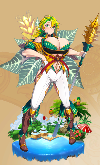 私はペンステモン……花言葉は「失った愛情」。 大切な人を失ってから、愛することさえ怖くなったわ。 でも……なぜかあなたのことは気になって、目で追ってしまうの。 もう一つの「あなたに見とれています」という花言葉のせいかしら? | フッ──ごきげんよう、団長さん。私はハバネロ。 花騎士と憲兵隊長を兼務させてもらっている。 街で不審者や不審物を見つけたら、すぐに言ってくれ。 この私が、甘く激しく事件を解決してみせるからさ! | 普段からあまり外に出ないのに、み、水着でなんて……。 団長様に見られていると思うと余計に恥ずかしいです……。 ホトトギスの花言葉「秘めた思い」は 開放的なリゾートとは合わない気がします……。 |