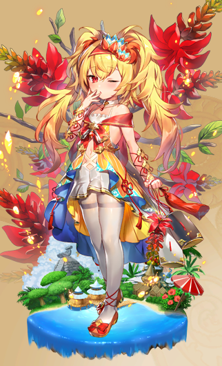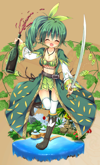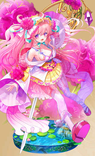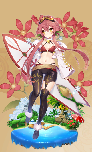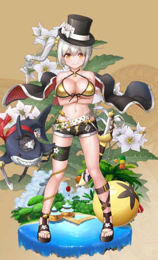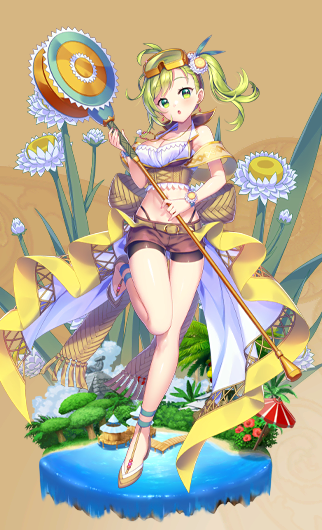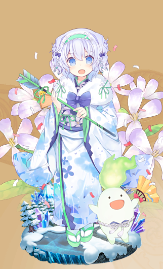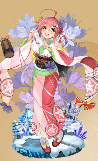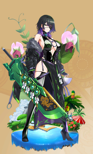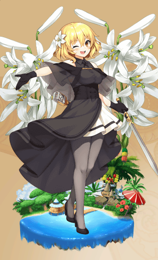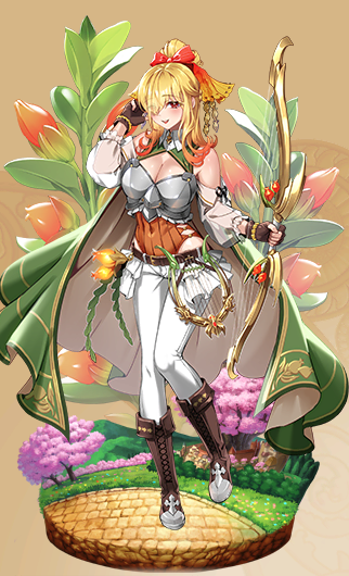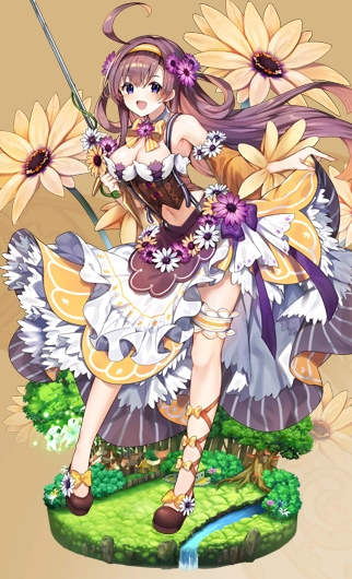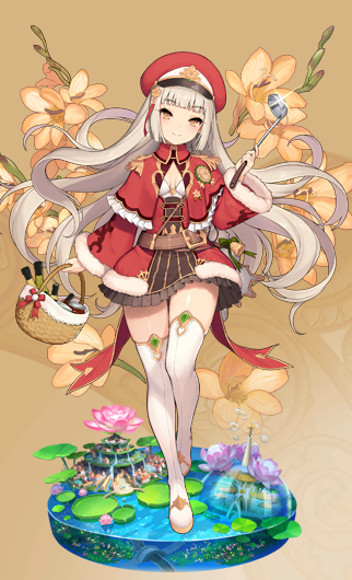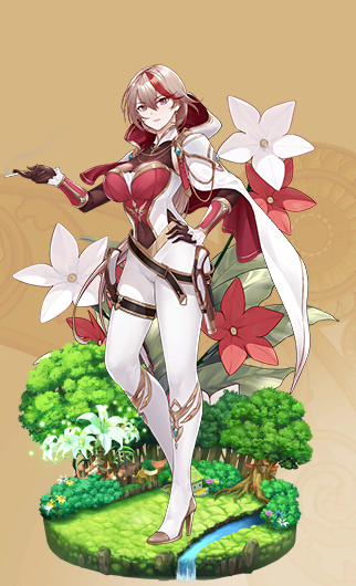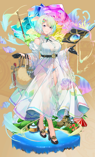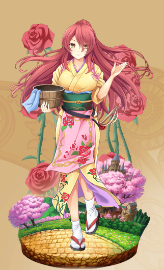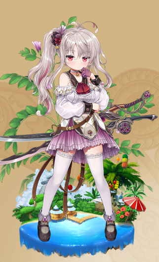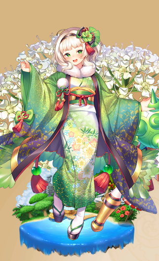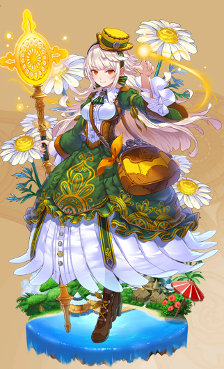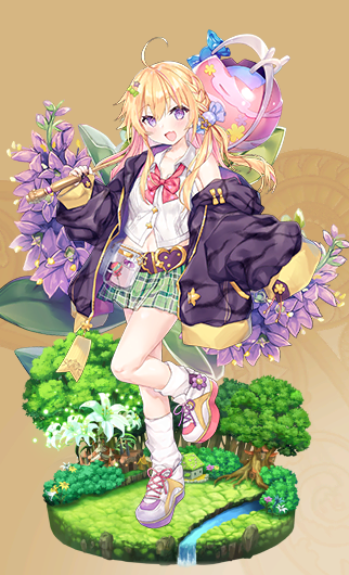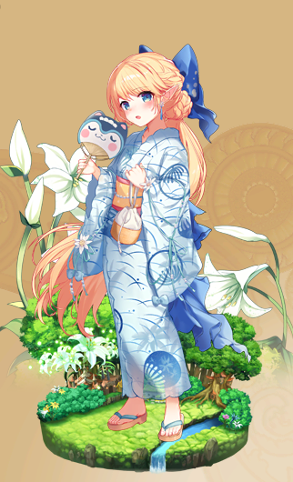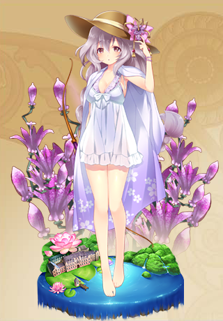 「悲しい別れ」「恨み」……それがイフェイオンの花言葉。 そう……行動原理ってやつ。頭にはこれしかない。 その為ならなんだってする。 「卑劣」なことだってするし、してきた。 だから、わたしはもう後戻りできない。 あなたの命を奪うまでは…。 | 「深い愛」「ただよう品格」それが私、エキナセアの花言葉だ。 貴族として品格を持ち、深い愛を持って民を守る。 それは、慰安を目的とした服装でも変わることは無い。 だから皆、変わらず私を頼ってくれて構わない。 | お酒大好き、宴会大好き、 世界中の酔っ払いはだいたい友達のホップだよ! 花言葉は「希望」「天真爛漫」! 温泉で飲むお酒が楽しみで楽しみで…… いてもたってもいられなくて、着替えちゃったわ! |