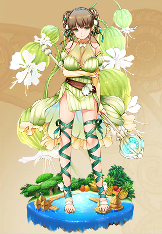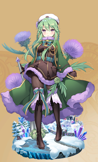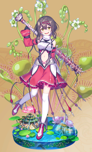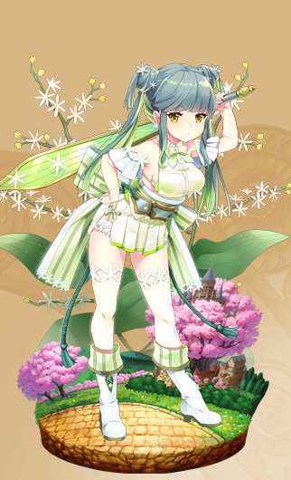 私の名前はアルテミシア。 周りからは黒い魔女と呼ばれているわ。 花言葉は「からかい」「愛の離別」。 男が嫌いね。あと退屈も嫌い。 私の我儘をきかない奴は魔法で木っ端みじんよ。 覚えておきなさい。 | 花言葉は「いたずら好きの」!花騎士、ヤマゴーヤっぴゃー! マーヤは、おもちゃが大好き! びっくり箱やおもちゃのラッパで、みんなをビックリさせちゃうよーっ! そして憧れの人は、もっちろんアデニウム様! ハナイっちには負けないっぴゃー! | 始めまして、花騎士のスズナです。七草乙女団の一人でもあります。 花言葉は「慈愛」それに「晴れ晴れと」。 昔は身体が弱かったので、今は健康にとても気を配っています。 それで晴れ晴れと過ごせるなら命だって惜しくは…… いえ、さすがに冗談です。 |