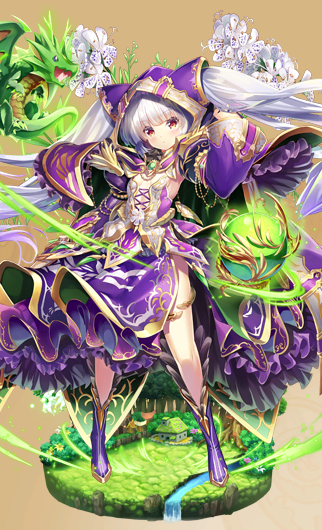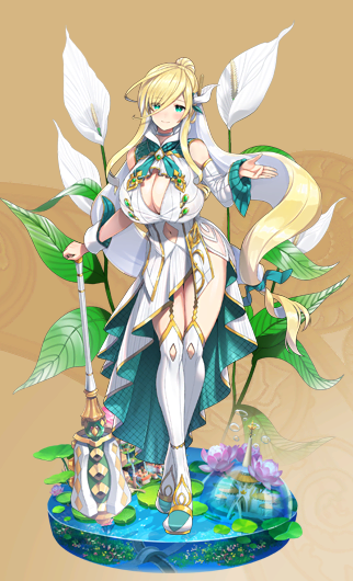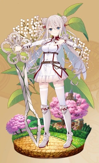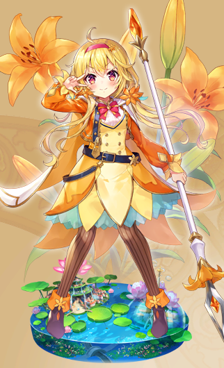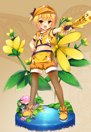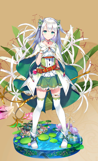 カリンです!花言葉は「優雅」に「豊麗」! そんでもって特技は風水です! カリンが来たからには、団長さんの金運も右肩上がりで間違いなし! カリンと一緒なら、お金は借りんですむ!ってことですよ!たぶん! | ロータスレイクの花騎士、バイケイソウよ。 ……特に、話すことなんてないわ……。 ………本当よ?……………本当なんだから、ね……? ……そ、そうね……あえて、言うなら…… 「寄り添う心」の花言葉のような、運命的な友達が欲しい……かな。 |