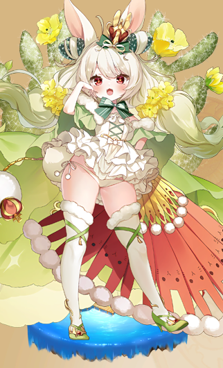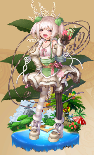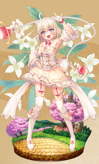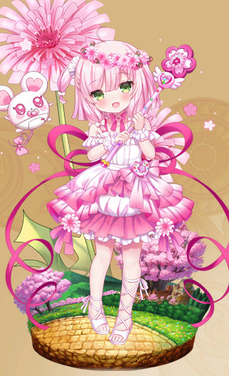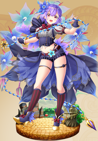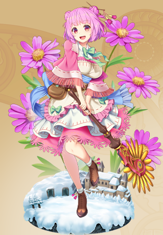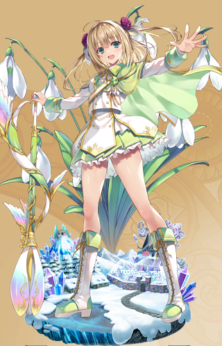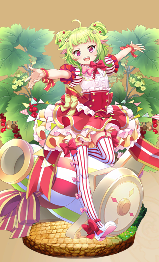 ハツユキソウです!どうぞよろしくお願いします。 花言葉は「穏やかな生活」そして「好奇心」です。 この衣装、実は自前なんですけど、よく出来ていると思いませんか? あまりに褒められたので、本当は目立ちたくないのに この格好で来ちゃいました! | 「初恋の思い出」……イベリスの花言葉です。 でも……思い出で終わらせたりなんか絶対にしません! 団長さんに「甘い誘惑」をして、「心を引きつける」! それで私の中を全部、ぜ~んぶ!いっぱいにしてもらいますからね♪ | 改まって自己紹介ってちょっと恥ずかしいな…クラスペディアだよ~。 花言葉は「永遠の幸福」、「心の扉を叩く」だね~。 演奏が得意で、中でも打楽器が二重マルなの。 私のことをおねーちゃんだと思って、 いつでも頼ってくれていいからね~。 |