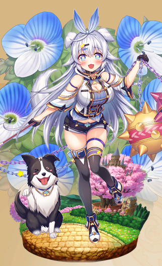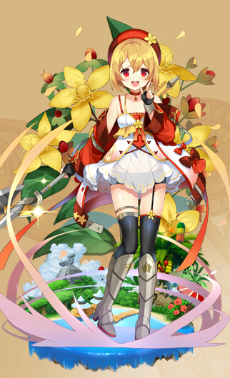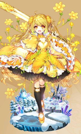 「不滅の愛」「黄金の輝き」そして「独創的」。 そんな言葉がこのイモーテルの花言葉さ。 まったくやれやれだね。俺には荷が重いよ。 けどまぁ……そうなってる以上そう振る舞うのを望まれてるのかもね。 せいぜい頑張るとするよ。 | さん、にっ、いちっ……はじめまして、団長さん。 リンデルニアです。花言葉は「あなたを慕ってます」。 ご、誤解がないように説明すると、 だからと言って恋愛が得意なわけではなく むしろ苦手と言うか……。って余計な事を……ごめんなさい。 ともかく、よろしくお願いします! | 「優雅」「幼心」「優しい心」などの花言葉がある、コデマリです。 「いくじなし」なんていうのもありますが、そんなことはないんですよ? 食べ物があれば、ですけど…… 身体は小さいですけど、たくさん食べて大きくなる予定です! |