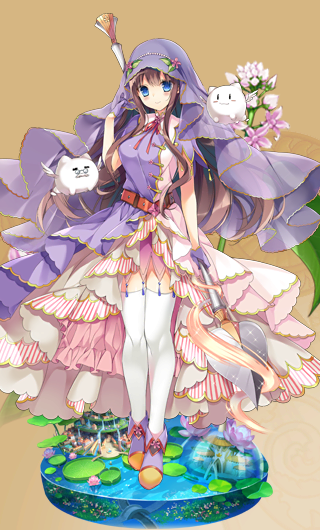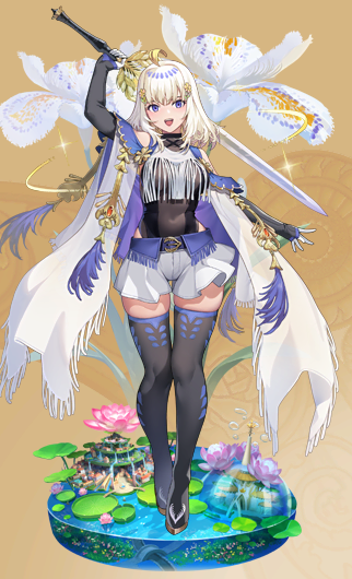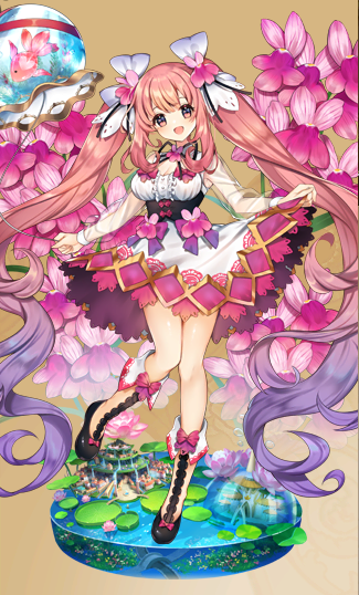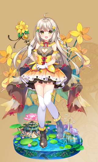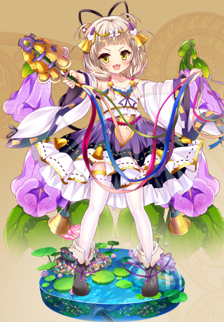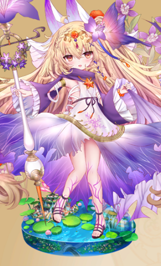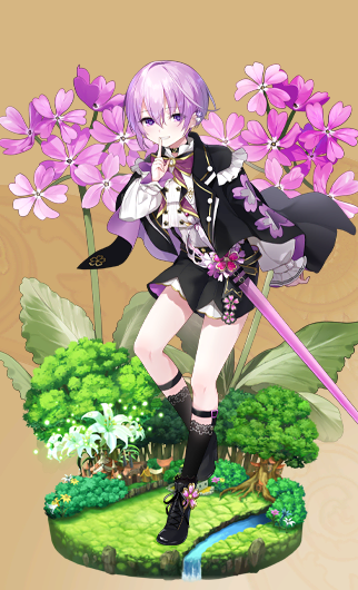 「儚い夢」「薄れゆく希望」…。 そんな花言葉を持っている私が、光華際で選ばれた。 だから、私は変わる、変わってみせる。 私を信じて待っててくれた人の為に……全てをさらけ出せる、私になる。 それを、この衣装に誓うから…。 | 「光華の姫君(こうか の ひめぎみ)」……シクラメン、です。 花言葉は「内気」なのに……なんというか、 皆さんのおかげですごいことになってしまいました……。 下を向かないように精一杯頑張りますので、 見守っていてください……はい。 | んー、じこしょうかい……? ミズは、害虫をやっつけるのがお仕事だよ。 カキツバタは優しいし、美味しい食べ物をくれるからだいすきー! ミズ、カキツバタと食べるバーベキュー大好きだおー! あ、花言葉は「美麗」だよ。ふっふっふ、美しいだおー? |