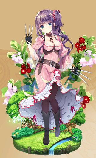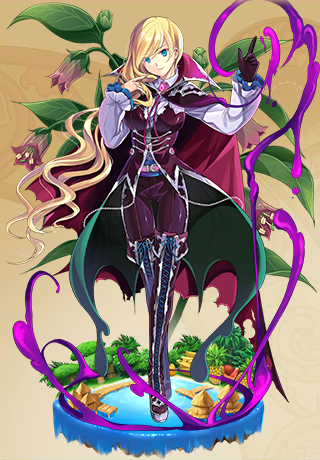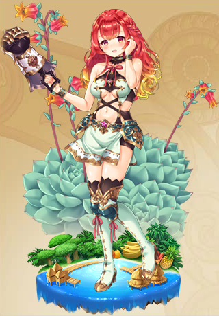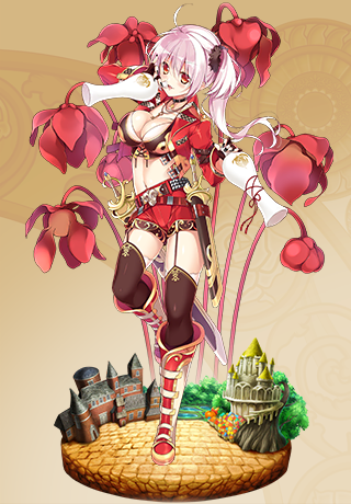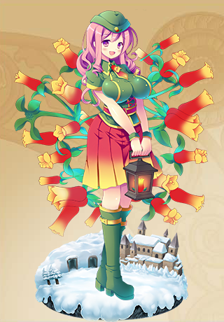 アタシの名前はラミウム!ロータスレイクの踊り子よ! 花言葉は「陽気」に「愛嬌」、後「初恋」もあるけど……。 まっ、け、経験は抱負だし、初恋ってガラじゃないかしらね? とにかく!腕にはけっこう自身あるし、積極的におねーさんに頼りなさい♪ | 花騎士にしてリリィウッドの第六王女、オナモミよ。 趣味は調教、特技も調教、 三度の食事より調教が大好きなの。 団長、あなたにも私のムチの味を教えてあげるわ……クククッ。 | ベルゲニアです。花言葉は「情愛」、「秘めた感情」、「順応する」。 いつもと衣装が違いますが、これはヒメ様からのプレゼントです。 嬉しくて、何度も鏡の前に立ってしまいました。 この機会に、遊びのない性格も少しは変えられたらと思っています。 |