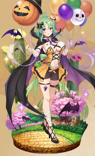 私はメギ。花言葉は、「あなたの助けになる」です。 カーパスさんの探偵助手として、いつもくだらない悪さばかりする ワルナスビさんたちを懲らしめています。 ……言い方が怖い? 私には「激しい気性」という花言葉もあるので、 そのせいでしょうか。 | えっへへ~☆ヒーちゃんの名前はね、ヤクノヒナホシっていうの! ヨーテホルクでキノコ料理専門のレストランをやってるんだけど、 スワンボートレースにもい~っぱい出てるんだ! ボートの名前はヒーちゃんズスターオー!う~んカッコイィ~! | やれやれ、よりにもよってこんな格好のときに……。 私はサンカクサボテンよ。 この服はハロウィンだからって、ルナリアに着せられたの。 どうにも慣れないけれど、 せっかくの申し出を断るなんて、無粋な真似もしたくない。 ……まあ、今宵限りの「一時の美」ってやつかしらね? |