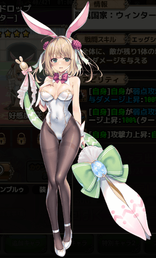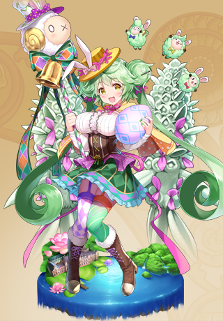 バルーンバインです。 花言葉は「飛翔」、それと……「あなたとともに」。 このバニー服は、イースターというお祭りで卵を配る係の制服なんです! 自分から、お手伝いしますって着させてもらいました。 ぴょんぴょん跳ねて、お空へ行けそうですよね! | 花言葉は「愉快な気分」!みんなのムードメーカー! リムナンテスですぅ!お気軽にリムちゃんと呼んでねっ♪ 突然ですが、花騎士同士のカンケイって、気にならない? リムちゃんは興味津々で・す・ぅ。 そう、花騎士は爆発だ~ですぅ! | 自己紹介……一方的におしゃべりするのあまり好きじゃないです。 だってマネッチアの花言葉は「楽しい語らい」ですもん。 自分のことを話すだけなんて、全然楽しくないです。 だから団長さまのお話も、後でいっぱい聞かせてくださいね? |