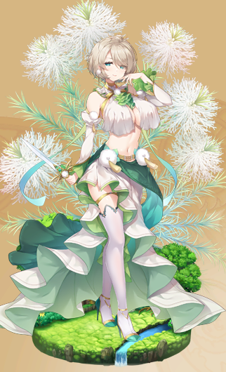 私は、エノコログサっていうの。 花言葉の「遊び」と「愛嬌」通り、 自由気ままで愛嬌たっぷりの花騎士だよ。 花祭りに合わせて、服も可愛めにしたの……似合う、かな? えへへ、気にいったなら今度、ゆっくりみせてあげるにゃ~♪ | 画家にして花騎士!カカリアだよー! 花言葉はなんと「技芸」!あたしにぴったり~! ……え、「秘めたる恋」?「控えめ」? それはその……アハハ、そういう一面もある、かな~。 | 「伊達男」「勇敢」「義侠」…… 私、スイートウィリアムを評する花言葉だ。 そのせいか振られるのは王子様役ばかり。 お嬢さん達の歓声は嬉しいが、たまには……と思うこともある。 君はどう思う?私の娘役、見てみたいかい? |