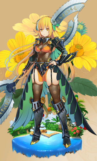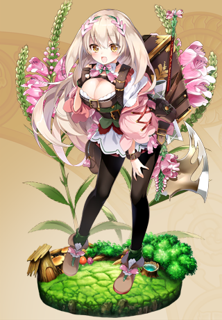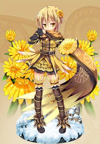 花言葉は「憩い」!「変人」!!「変わり者」!!! それがあたし!サラセニア!なの・です! 趣味は落とし穴作り!だよ?も~っとくわしい自己紹介は~、 いっしょにお酒を飲みながら、じ~っくり、た~っぷり、ね?ね?ね~? | 薬師エルダーフラワーだよ。 「思いやり」とか「物事への熱中」、 「苦しみを癒す人」なんてのが花言葉。 リリィウッドの人からは女神の薬箱なんて呼ばれて…… って、これは団長様も知ってるかな? そもそもこれを聞いたからスカウトしに来たんだもんね。 | ピンポンマムの花言葉は直球なの♪ 「君を愛す」「真実」「私を信じて」……ね?ド直球♪ だからマムは腹芸とか駆け引きとか思わせぶりとか絶対しない。 マムは団長に一目惚れ、ラブユー、ラブユー♪ だ~い好き♪何度だって言い続けてくからね~♪ |