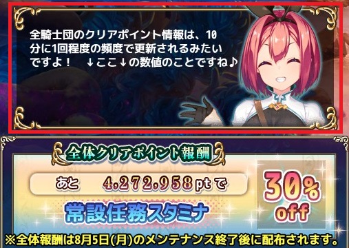 | 地下世界の進撃には、世界花の加護を得て挑むことになります! | | 1パーティ5名を4パーティ、計20人で部隊を編成しましょう! 世界花の加護は、各花騎士に割り振られます! | | 編成する花騎士の数が少ないと、世界花の加護も少なくなってしまいます! できる限り最大人数まで編成することをオススメします! | | 花騎士がダメージを受けると、世界花の加護も減少してしまいます! 気をつけてください! | | 世界花の加護は、一度地下世界に入ったら基本的に回復しないようです! 気を付けて進みましょう! | | 途中で部隊の編成を変更しても、世界花の加護は変わらないままみたいですね! | | 倒れてしまった花騎士も、次の進撃では世界花の加護で復活し、参戦することができますよ! | | 進撃時には、世界花の加護が割り振られるみたいですね! 倒れた花騎士も、無傷だった花騎士も、次の進撃では同じ割合のHPからスタートです! | | 進撃するにはスタミナポイントが必要です! 蜜を飲んだり石を割ったりして回復するアレのことですよ♪ | | 敵の強さに応じて、消費するスタミナポイントが異なります! 強い敵ほどたくさん消費、わかりやすいですね! | | 進撃に連続成功すると、クリアポイントにボーナスがつくみたいですよ! 積極的に狙っていきましょう♪ | | 進撃に連続成功すると、貰える報酬が少しずつ増えていくんですよ! いわゆるボーナスってやつですかね? スコップちゃんもほしいです! | | 連続進撃のボーナスには、上限があるみたいですね! | | 進撃やミズウォルム討伐も当然ですが、困っている精霊さんたちも助けていきたいですね! | | 地中に巣食う害虫も、かなり数が多いですね。力を合わせて討伐していきましょう! | | 地下深くに進めば進むほど、害虫はどんどん強くなっていきます! お約束のネタですね! | | チェックポイントを通過すると、ボス害虫が現れるみたいですね! 心してかかりましょう! | | 害虫討伐に成功すると、戦果の記録としてクリアポイントが付与されます! たくさん討伐して、クリアポイントをがんがん稼ぎましょう! | | 害虫を討伐すると精霊さんからお礼をもらえることがあるそうですよ! | | 各ステージでは、ミズウォルムを討伐しつつゴールを目指しましょう! ゴールに到達できなければクリアしたことになりませんからね! | | ときどき、世界花の加護が回復する不思議な場所が発見されるみたいですね! なんでもそこには、見たこともないような蕾が存在するとか? | | 次のステージへ進むときに、属性の予告がされるみたいですね! この情報を活かして万全の態勢を整えましょう♪ | | 次のステージへ進むには、全体のクリアポイントが一定数に到達する必要がありますよ! 他の騎士団と協力してガンガン掘り進めましょう! | | 団長様! 疲れたら一時退却をオススメします! 同じステージから再開できますので、英気を養い、万全の状態で再挑戦しましょう! | | 当然ですが、部隊の全花騎士が倒れると進撃は失敗、このまま進むのが難しい場合はあきらめて撤退しましょう! | | 撤退を選択すると、それまでの進撃状況がリセットされてしまいます……。苦肉の策ですが、時には英断も必要かと! | | 団長様! 連戦も大事ですが、たまには拠点に戻ってみてはいかがでしょう? プレゼントボックスが溢れかえっているかもしれませんよ! | | 団長様個人の累計クリアポイント報酬はすぐに配布されるみたいです! プレゼントボックスをチェックチェック♪ | | 団長様個人のクリアポイントは、作戦本部に報告されます! 個人報酬の他にも、全騎士団の総合クリアポイントでもらえる全体報酬がありますよ! | | 団長様のクリアポイントは作戦本部に報告され、全体クリアポイント報酬にも影響します! 張り切っていきましょー! | | 全騎士団のクリアポイント情報は、10分に1回程度の頻度で更新されるみたいですよ! ↓ここ↓の数値のことですね♪ | | 全体クリアポイント報酬は決戦後に配布されるそうですよ! 今から待ち遠しいですね! | | 千花繚乱の勲章は、ステージ突破時、および累計クリアポイントの報酬で獲得できるみたいですね! | | 決戦に挑む際は、ツーシンカンキョーが整っていることをオススメします! って言えと言われました! スコップちゃんには何のことかさっぱりです! | | 歴戦の騎士団長様は、蜜を大量に持ち込んで連戦する構えのようです! 一気飲みはほどほどに! | | 敵が強いと感じたら、花騎士たちを強化しましょう! って、団長様ならちゃんとわかってますよね♪ | | 敵が強いと感じたら、新しい花騎士を迎え入れるのも手ですね! え? 石がない? 石ってなんのことですかー? | | 同じ階層の同じステージに進撃しても、地形が変わっていることがあるみたいですね! 地下世界は不思議に満ち溢れています! |