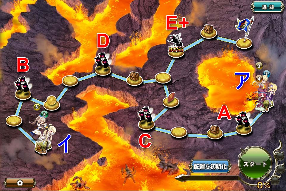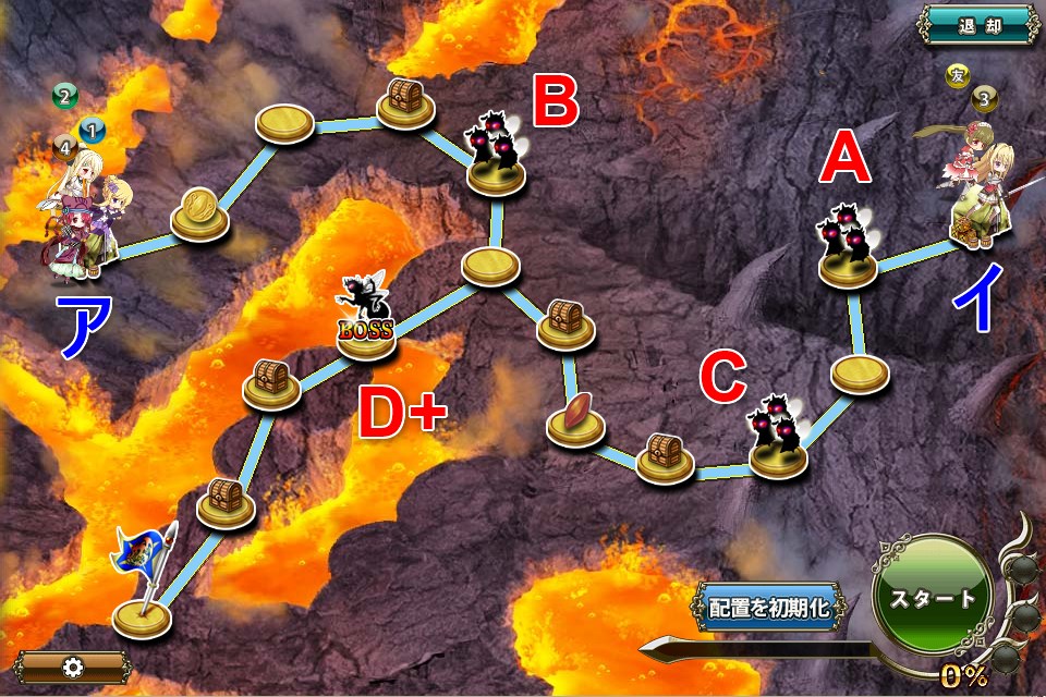 - ランダムパネルが存在するが、全部隊とも負けない戦力であれば等速初期配置で達成可能
