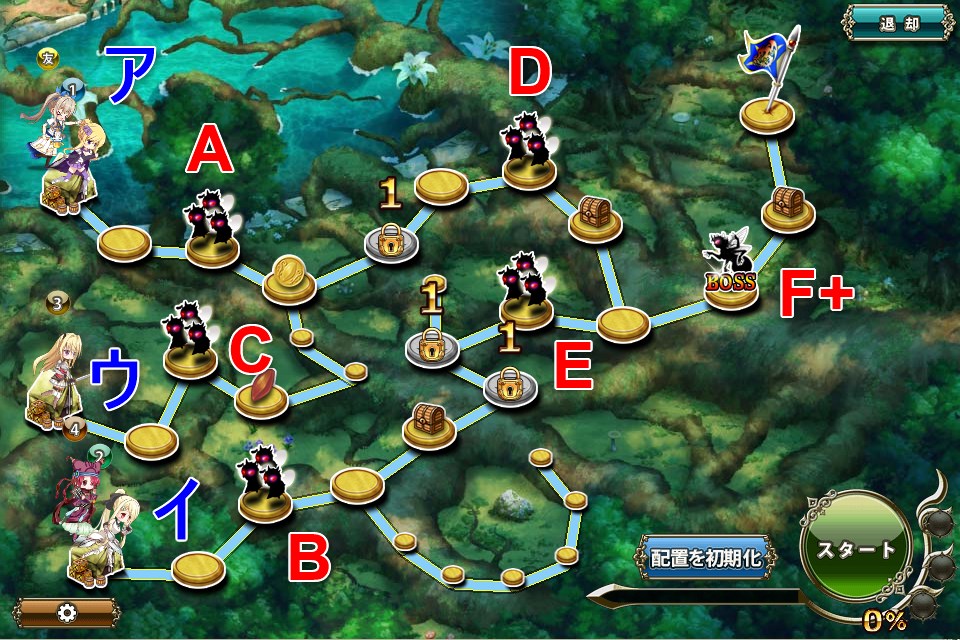 - 最少PTで狙う場合はアとイに1部隊ずつ配置
