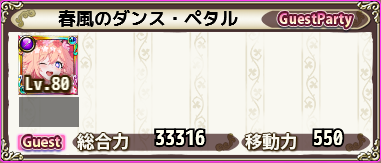 勲章報酬 スタミナ ゴールド ガチャ種 害虫討伐証 経験値(効率) 宝箱 備考 華霊石x100/高級なぬいぐるみ 54 5242 1329 64 (????) 655 (????) 1(★2or★3or贈り物1%or各種アンプルゥ) 推奨総合力 250,000