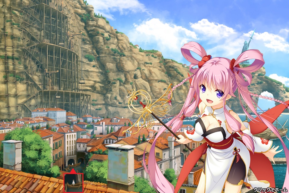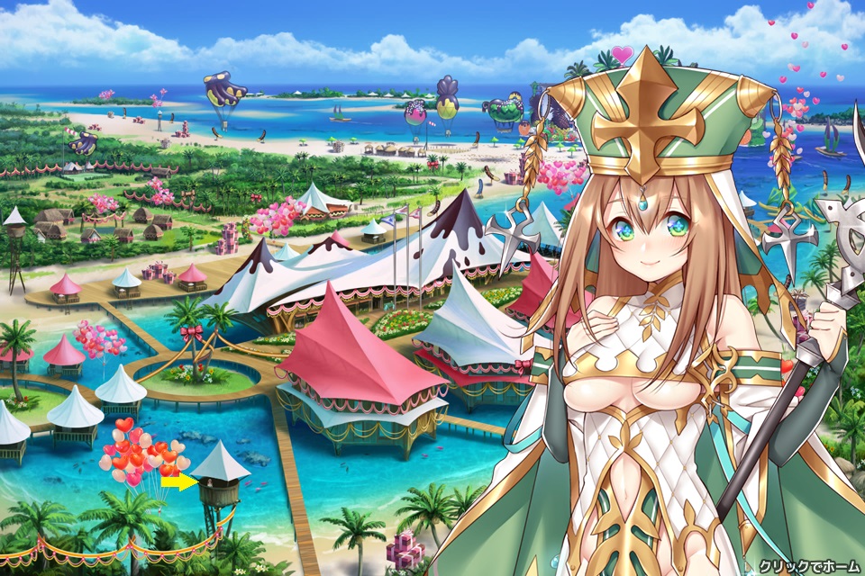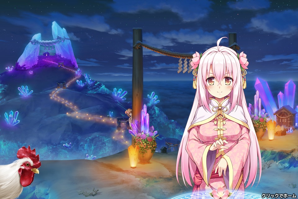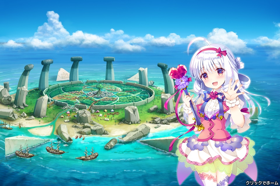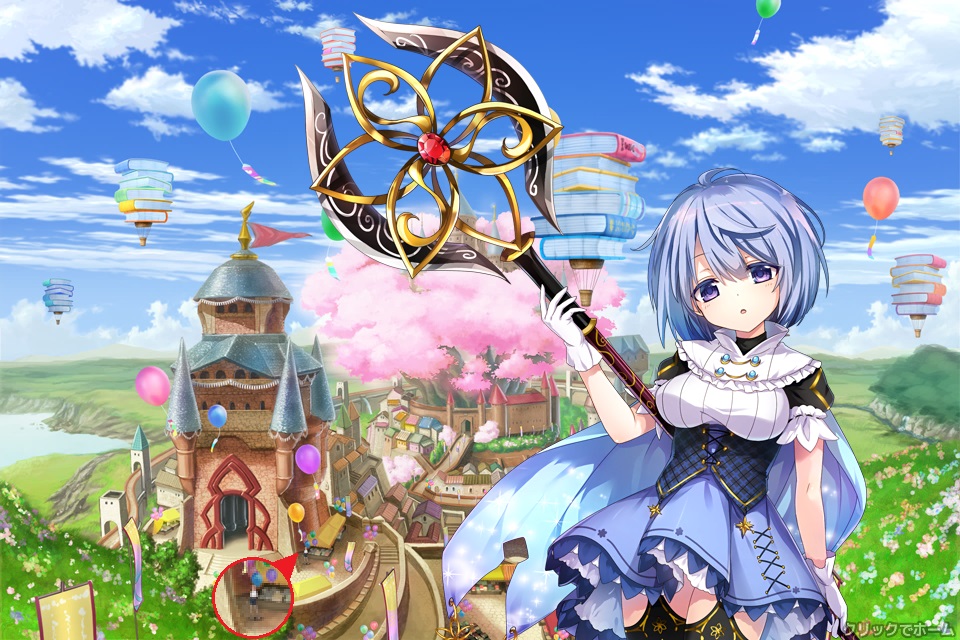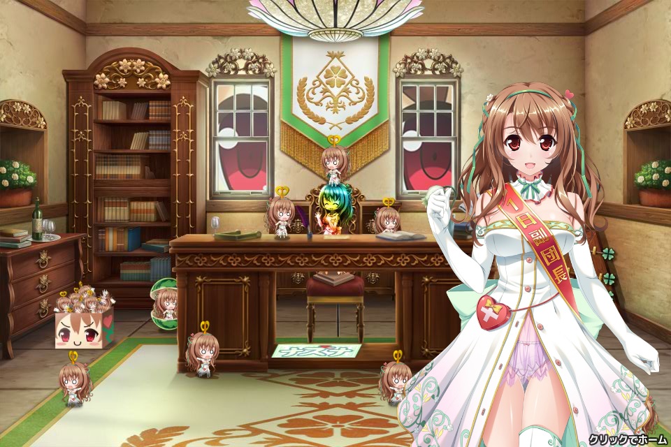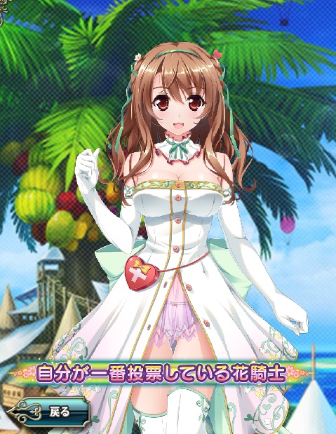 チュートリアル、プレゼント画面、ショップ画面等で出てくる白い服装でパンツ見え見えの女の子。