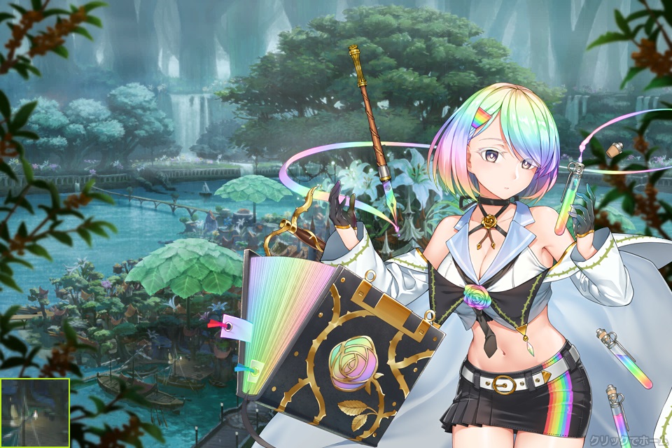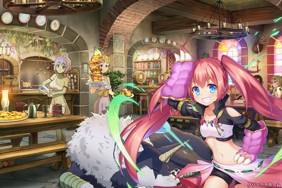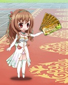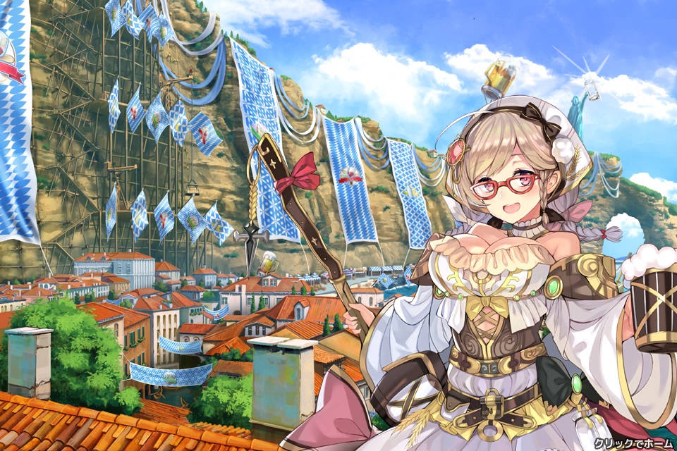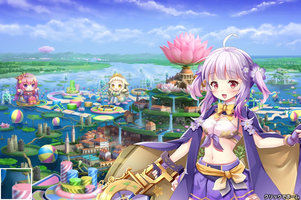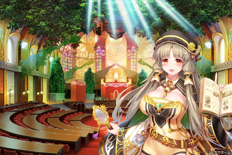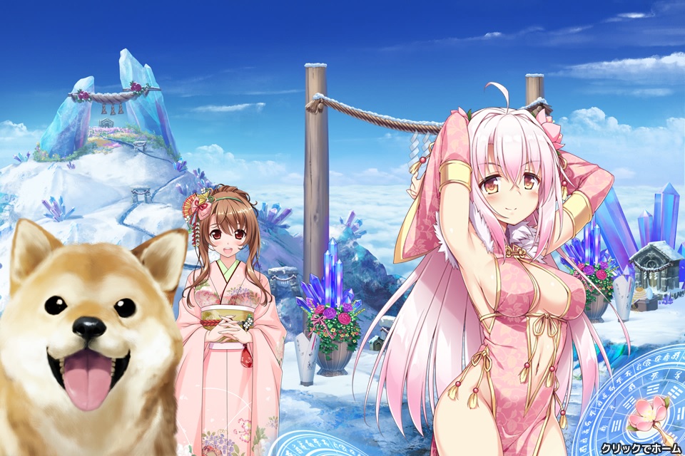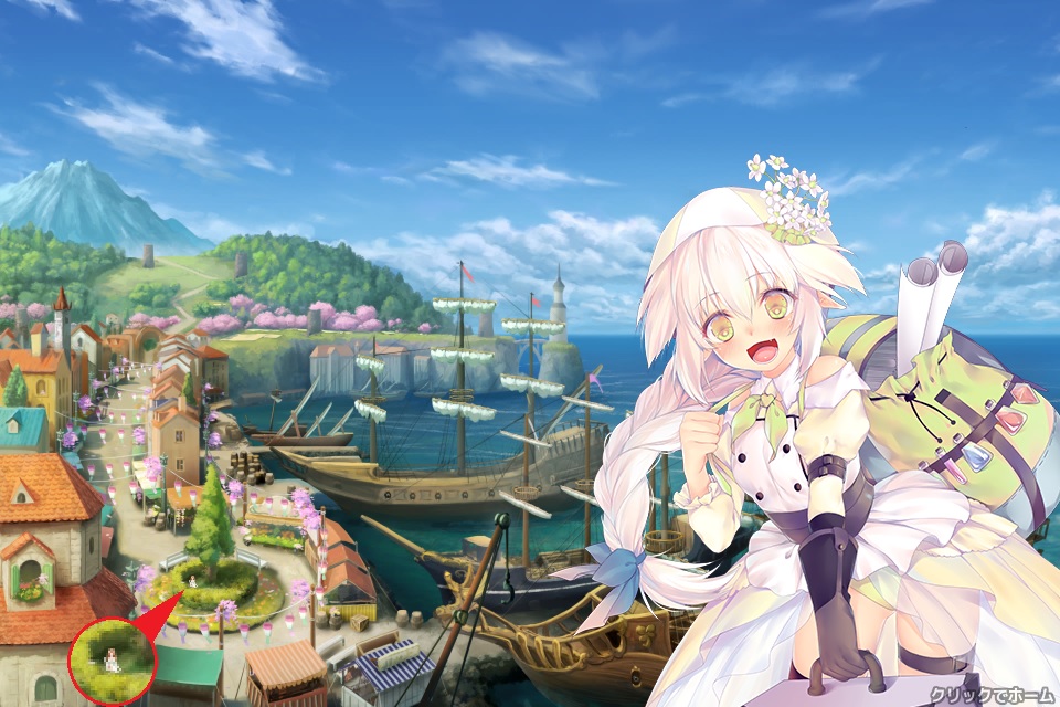 チュートリアル、プレゼント画面、ショップ画面等で出てくる白い服装でパンツ見え見えの女の子。