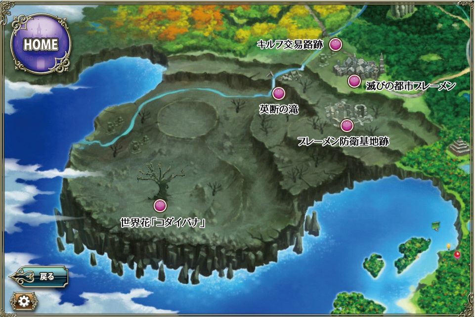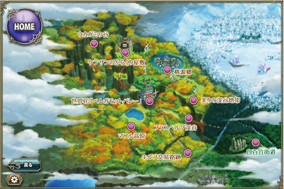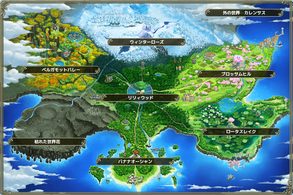 このページは執務室から見られるワールドマップのみに限らず、各種ストーリー・小説等のネタバレを含む可能性があります。ご留意下さい。 スプリングガーデン ワールドマップ †