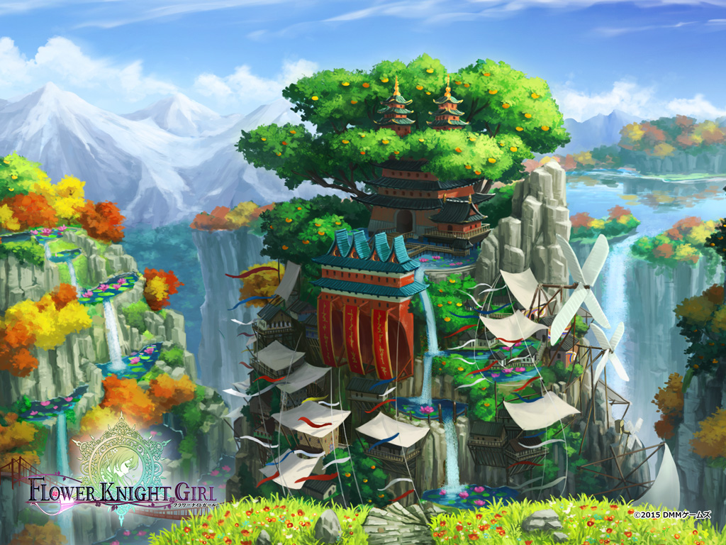 | ベルガモットバレーの代名詞にもなっている深い峡谷郡。 高地から流れる滝には世界花を潤す力があり、スプリングガーデン随一の水源とされている。 この恩恵を最大限に活用するために水力、風力といった自然と共生できる技術が発展してきた。 また、険しい地形は愛染流を修める花騎士の修行の場としても活かされている。 |