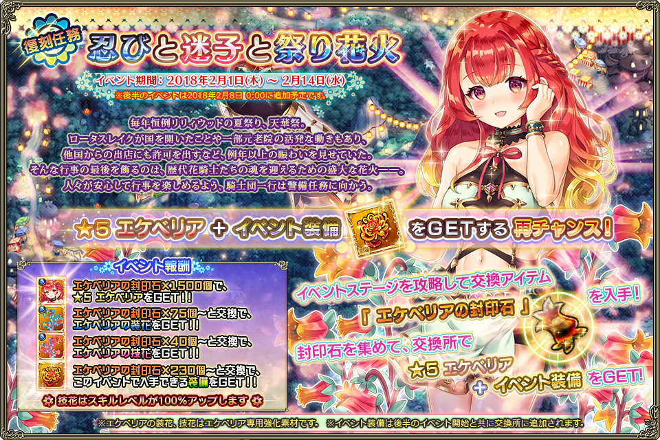 勲章報酬 スタミナ ゴールド ガチャ種 アビ育生の源(効率) 経験値(効率) 宝箱 備考 華霊石x2/特別功労賞「銀」 80 10502~11955 181~209 106 (1.325) 360 (4.500) 4(★2or生命の結晶x2orアンプルゥ)+1(生命の結晶x5) 祭事の矢羽×500
