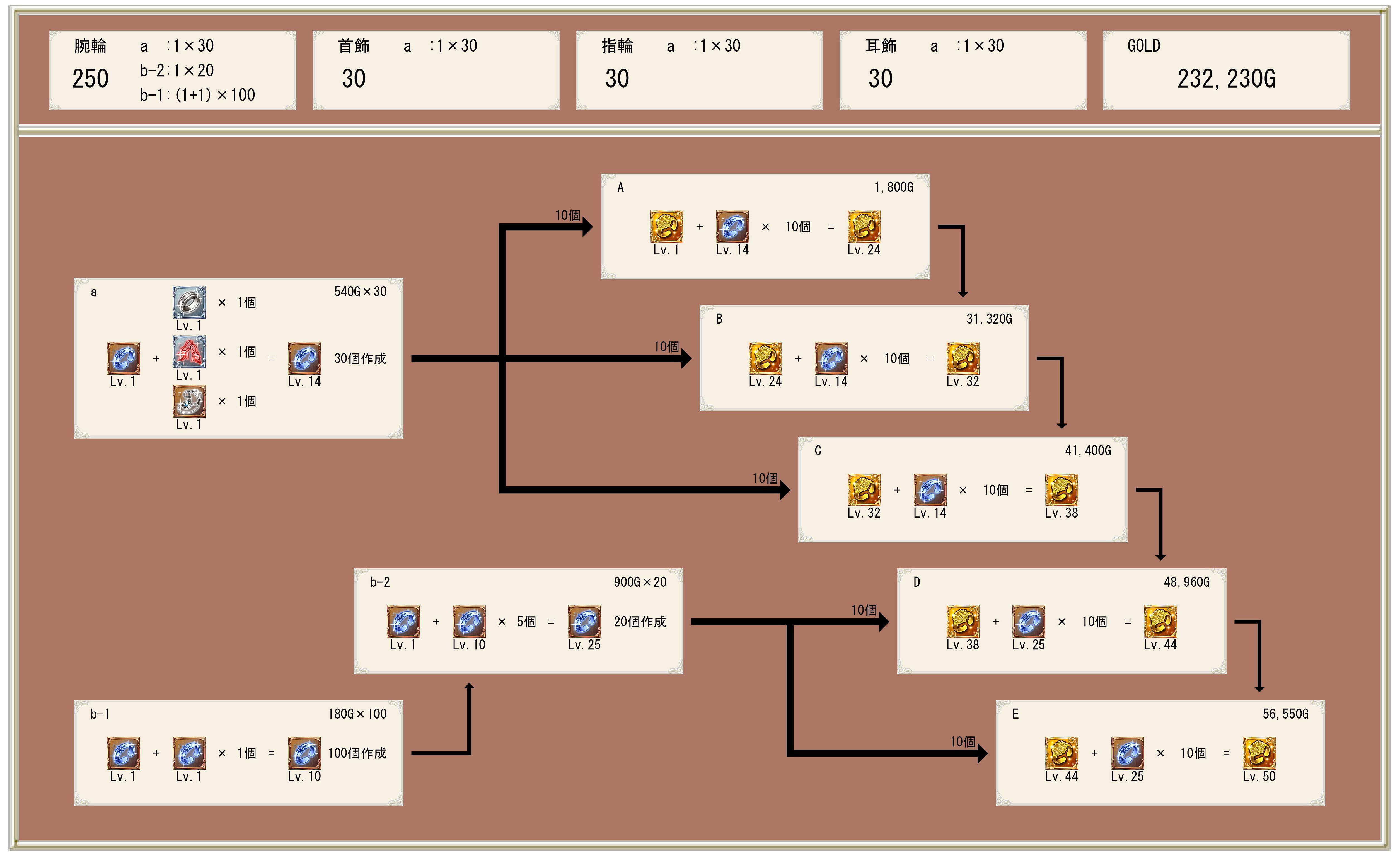 素材A'【★4装備Lv9】=【★4装備】に【★4同種を1個合成】