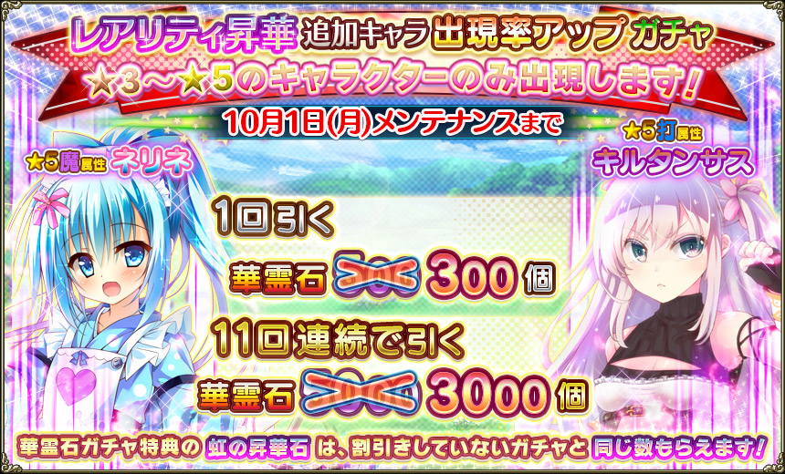 ※ガチャラインナップ、交換可能なキャラクターへのキャラクターの追加は行いません。