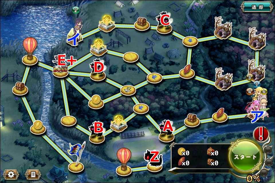 - 等速、ア2・イ3でお祈り。アに友軍を置けばザコBとボスE+、Zを任せられる。