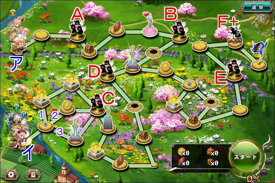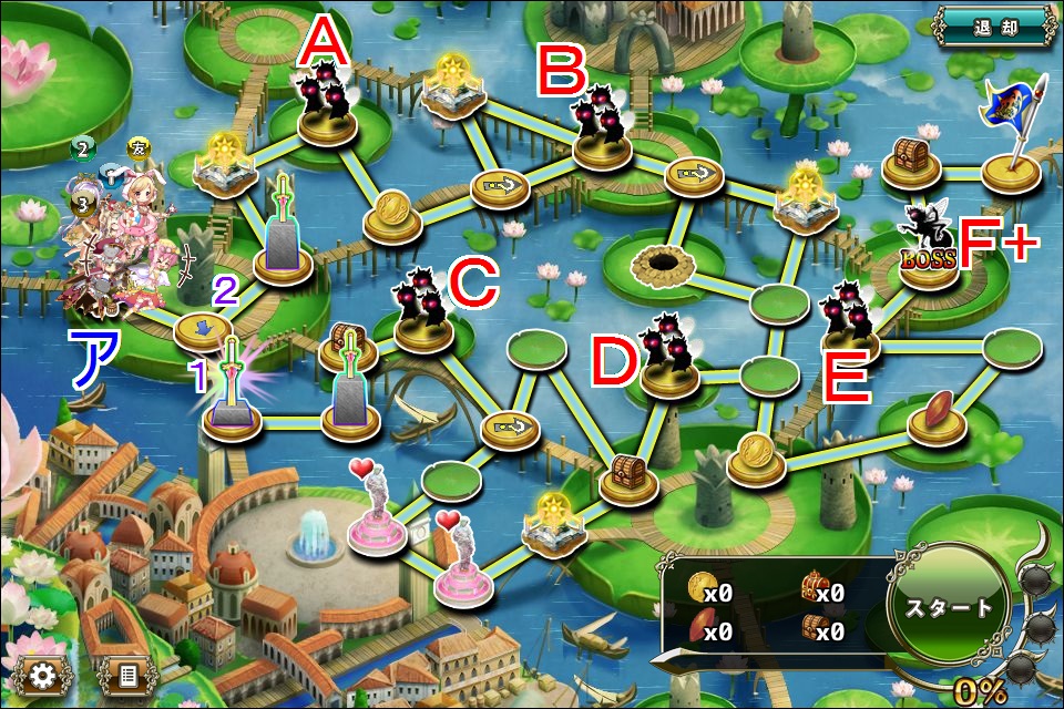 - 移動力560程度の第一部隊をイに配置、残りを移動力600台中盤~700程度でアに配置し、Aと接触出来るようにお祈り。